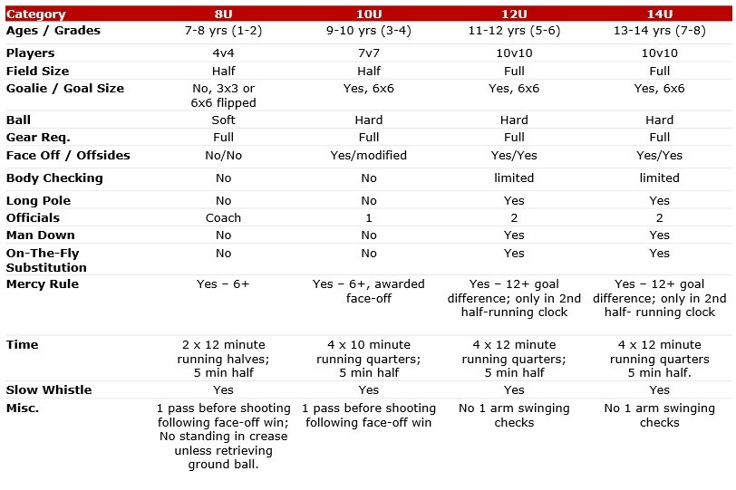 Badgerland follows official USA lacrosse rules with some some exceptions. A summary of key rules and exception is noted below. The following rules were adopted for the 2025 season.