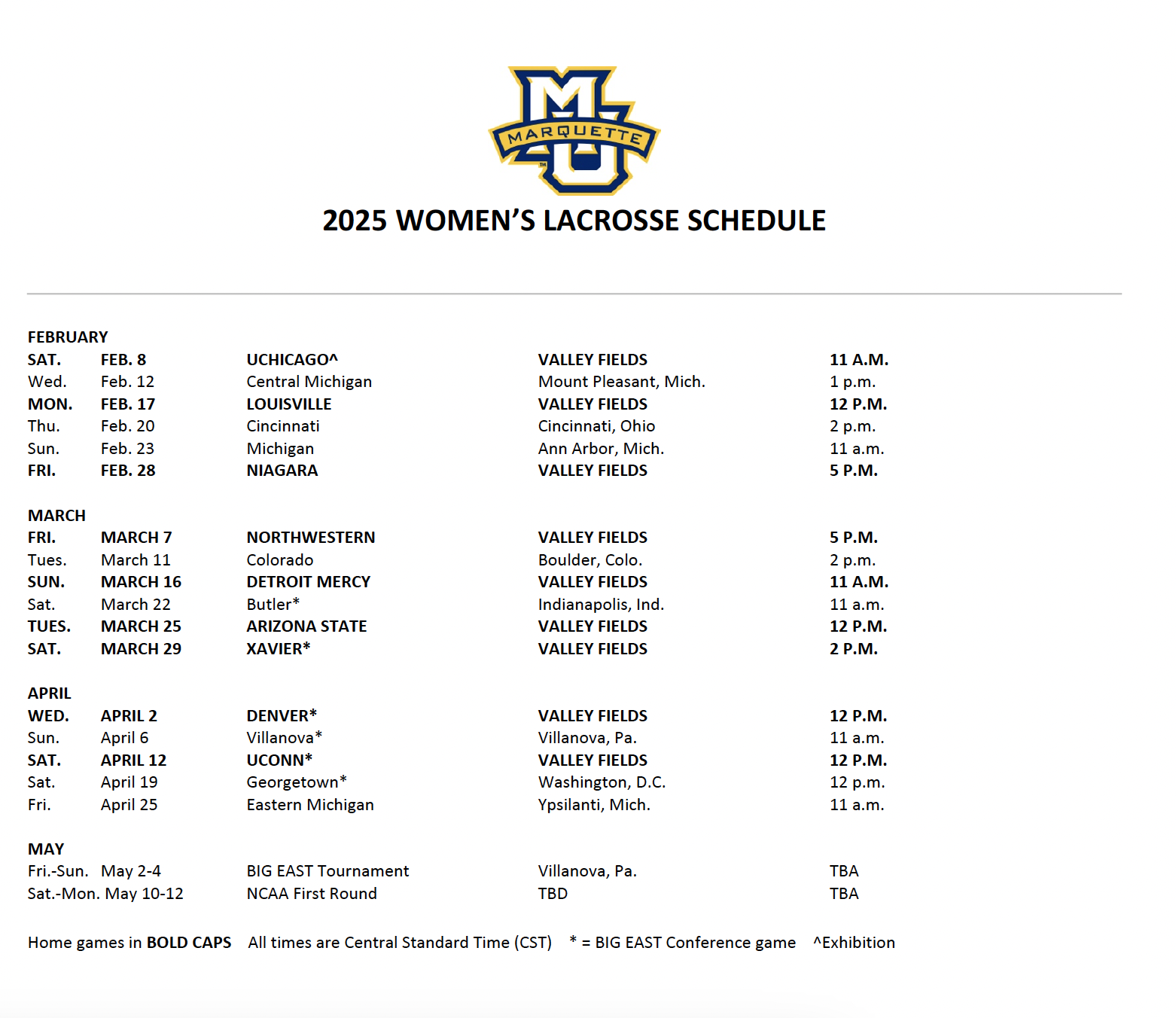 A rep from Marquette has reached out and offered a group ticket discount program for the women's lacrosse games. Groups of 15 or more will receive tickets at a discounted rate of $2 per person.